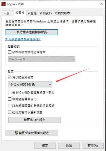 如出現遊戲顯示異常如下圖,將登入器LOGIN.EXE更改為16為元即可正常